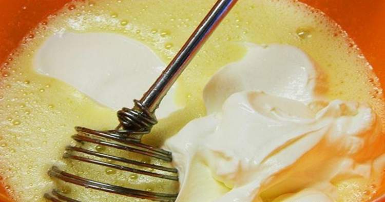 До збитої цукрово-яєчної маси виклала сметану.