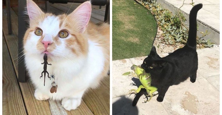 Сама природа зробила кішку яскраво вираженим хижаком. Майстерність кішки на полюванні визначається не тільки інстинктами. Масу мисливських навичок кішка набуває, спостерігаючи за полюванням інших кішок, після чого відточує побачене на власному досвіді. Наприклад, ловля птахів дається кішці досить великими зусиллями, і перш ніж вона зможе розвинути якості гарного птахолова, як правило, проходить досить багато часу. Проте сьогодні, ми підготували для вас підбірку унікальних фотографій, де чотирилапі намагаються зловити або ж подружитись з ящірками!