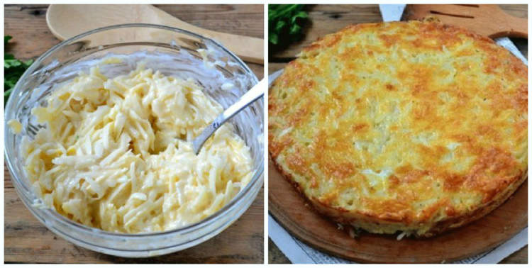 - У форму для випічки діаметром 26 см необхідно перекласти сирно-картопляну суміш.