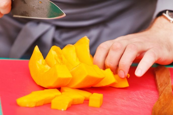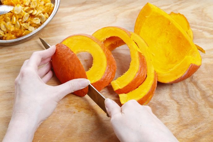 Добре очистити гарбуз від насіння і шкірки. Наріж кубиками.