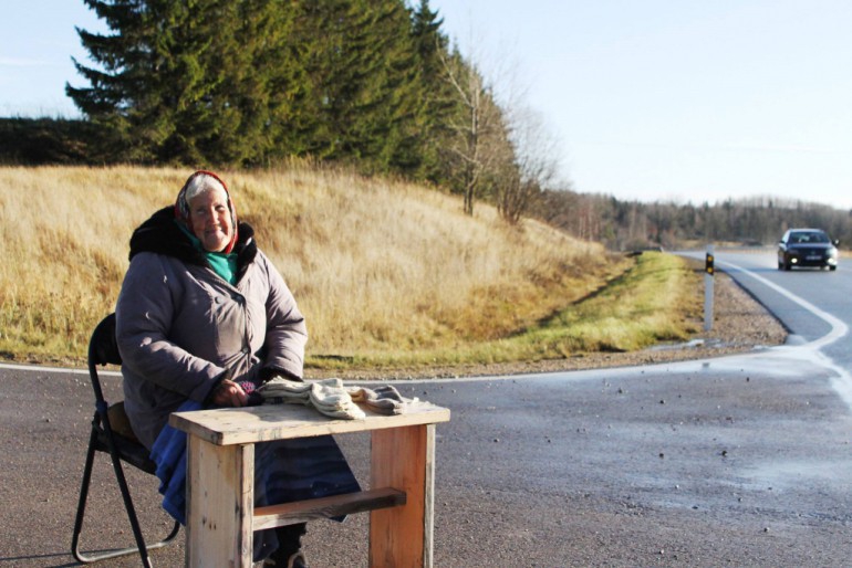 Старенька бабуся продавала біля дороги хустини та носки. Ось проїхала перша машина, друга, десята, але ніхто не зупинився. Однак, не може просто так піти та покинути – треба хоча б одну пару продати. Вже почався невеликий сніг та повіяв вечірній холод.
